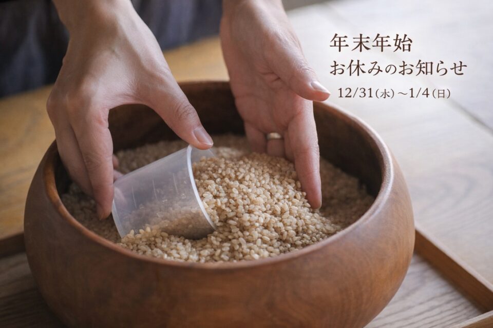 12月31日(水)〜1月4日(日)まで、年末年始のお休みをいただきます。